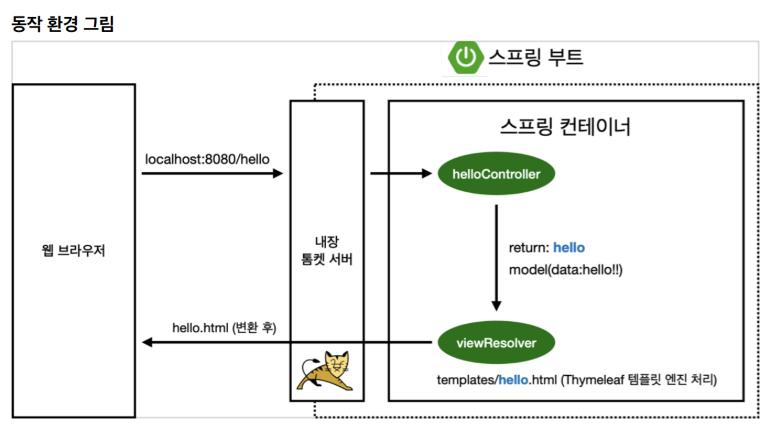 ViewResolver가 viewName (e.g., hello)을 매핑해서 화면을 찾아 처리(렌더링)한다.- resource:template/ + (ViewName) + .html