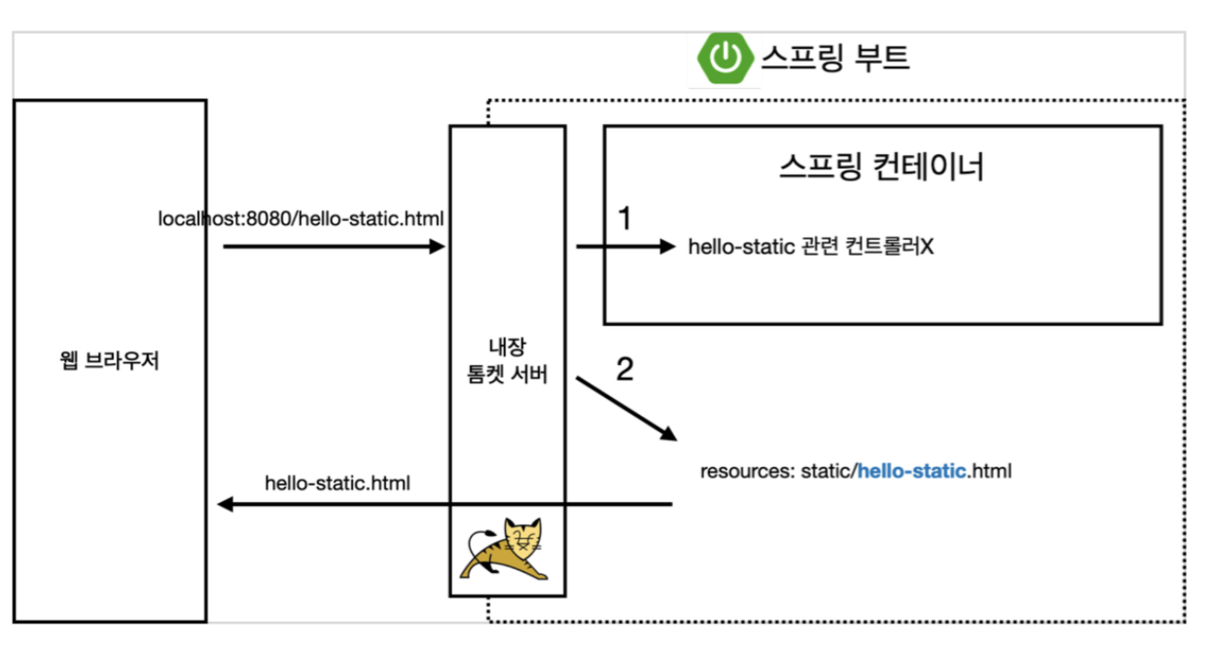 - URI 요청에서 관련 Controller가 Spring Container에 등록이 안되어 있으면 Tomcat서버에서